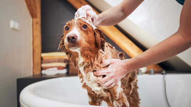 A bath can be another great way to relieve itching on your dog — especially if they've been bitten by mosquitoes in more than one location. An oatmeal bath is a top choice because oatmeal has anti-inflammatory properties. Soak your pup in a soothing oatmeal and water solution for about 10 minutes for maximum benefit. If you don't have an oatmeal shampoo on hand, you can try a homemade oatmeal shampoo for dogs. First, blend up about a half cup of unflavored oatmeal. Then, pour it in a bath with warm water, and be sure to rub the oatmeal gently over any itchy bites.