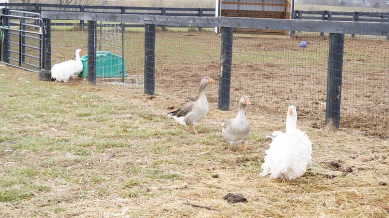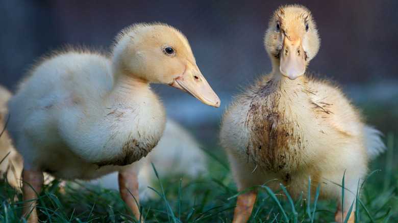 Another option is to complement your pet duck with other birds, such as geese or chickens. All of these birds can generally share the same enclosure without any issues. Certain dogs can also become your duck's sidekicks. However, there are some caveats. Some dogs — especially large ones — see ducks as prey and may want to chase or harm them. This behavior can be avoided by adopting a puppy and duck at the same time, choosing a small dog that weighs under 10 pounds, and/or training. In any case, you should closely monitor all initial interactions between the two animals.
