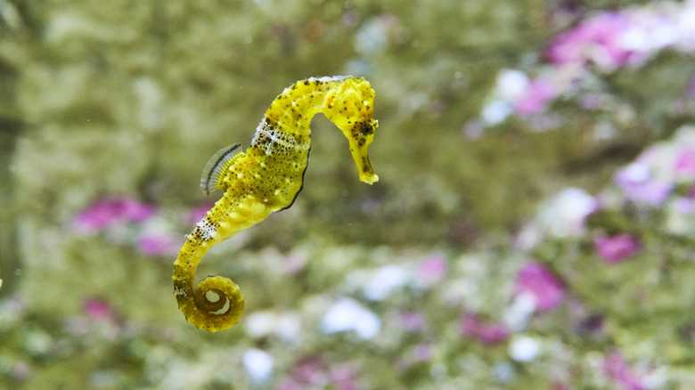 Before you care for a seahorse at home, you should have the right setup to ensure they stay happy and healthy. To add seahorses to an aquarium, the tank should be at least 18 inches tall to allow them to happily move around. A wide tank is also a good idea, as seahorses prefer to move side to side as well. The size and number of seahorses also impact the size of the tank — so go larger if you are keeping multiple. You can even go extra big by making a DIY 300-gallon tank at home for the ultimate experience. It's also good to make sure the tank has plenty of good bacteria to support a healthy ecosystem.
